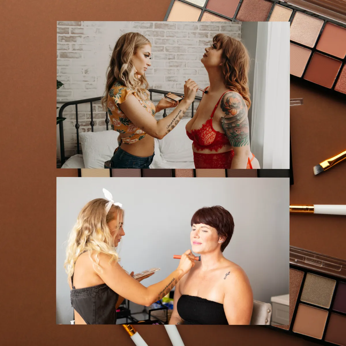 Your boudoir experience starts with a relaxing 1.5 hour session of hair & makeup. Whether you want a natural or full glam look, our artists are the best in the industry. Arrive in comfy clothes with your hair dry and we'll take it from there!