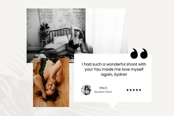 When it comes to posing, all you have to do is show up, and we'll take it from there! Sydne has photographed hundreds of women in her career and developed a posing system that works for every body! She'll direct everything from your head to your toes! Plus, the team is there for the assist!